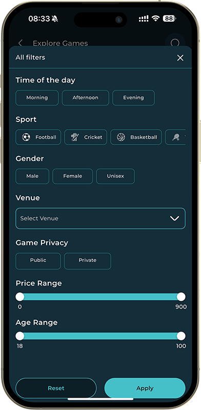 Book your favorite venues directly through the app. Check availability, reserve instantly, and play without the hassle.